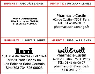 Profitez des remises en cliquant dans le menu déroulant et faites le choix de 1 ou 2 tampons identiques + leurs cassettes d'encrage OFFERTES. 6/4913